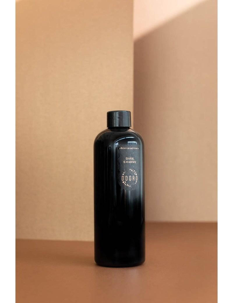 Mājas aromāta papildinājums - tiem, kam aromāts "Dark Charms" jau paspējis iepatikties un vēlas to iegādāties vēl lielākā daudzumā. Varēsi ērti uzpildīt, ja iepriekš iegādātais iepakojums jau ir beidzies vai varat uzpildīt jebkuru citu piemērotu trauku. Lielisks atmosfēras pastiprinātājs un ekskluzīva, grezna interjera detaļa.